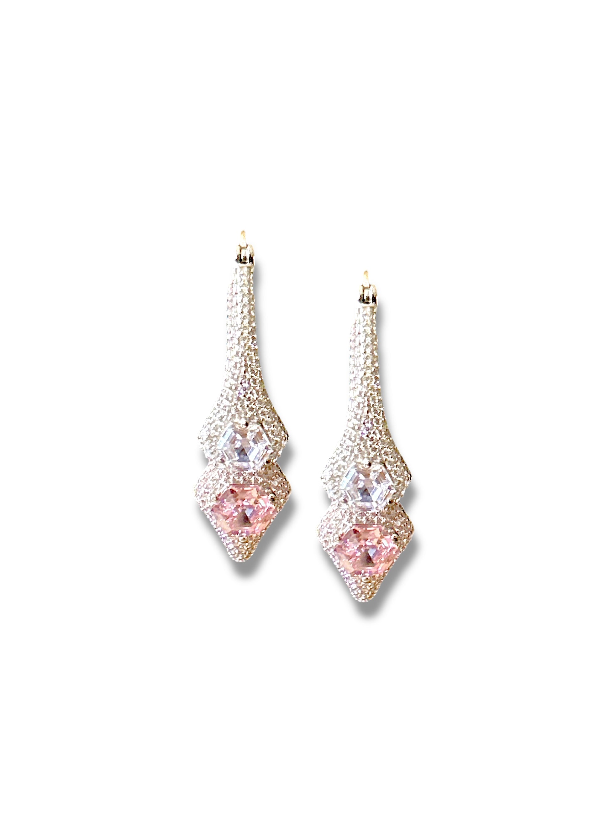 GRADIENT PINK AND WHITE STONES SET IN A TAPERED CASCADE OF GLITTERING ELEGANCE.